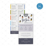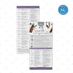 Gebruik deze kaart als snelle referentie, of je nu nieuw bent met oliën of al ervaring hebt. Wat dacht je van het geven als cadeautje, het toevoegen aan een welkomstpakket, het gebruiken als boekenlegger of het tentoonstellen op een standaard of beursstand waar je informatie snel bij de hand wilt hebben als gespreksstarter?